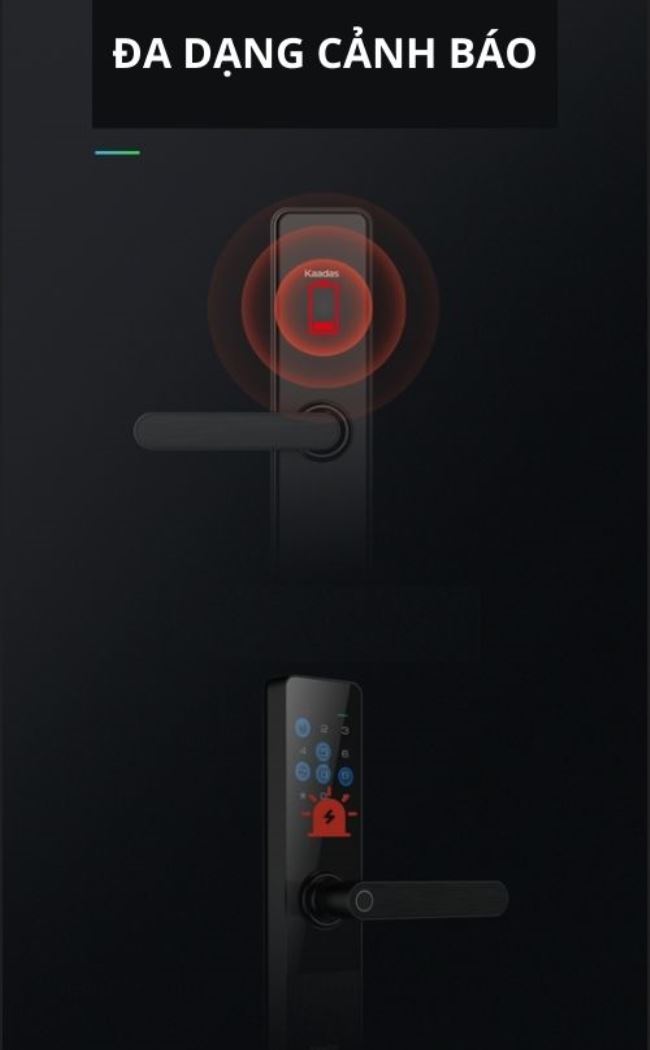 Kaadas M5 có tính năng cảnh báo khi pin yếu hoặc cảnh báo đột nhập